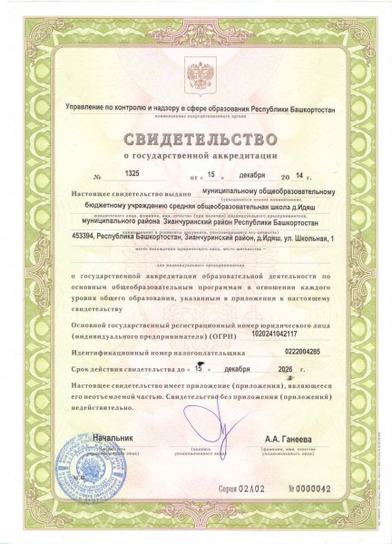 | Полное наименование образовательной организации* | Муниципальное общеобразовательное бюджетное учреждение средняя общеобразовательная школа д. Идяш муниципального района Зианчуринский район Республики Башкортостан |